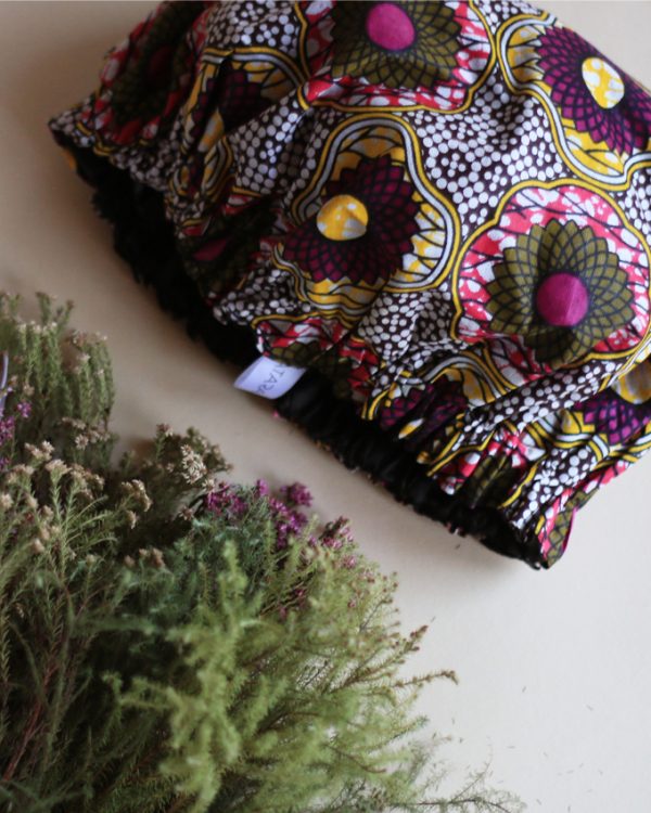 Shweshwe Satin Sleeping Cap (Purple/yellow/white/black)